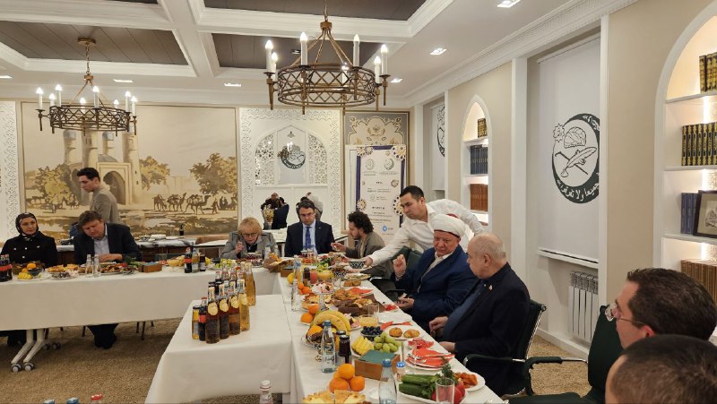 В резиденции Московского муфтията Духовного собрания мусульман России состоялся торжественный вечер разговения - ифтар, приуроченный к священному месяцу Рамадан. Мероприятие прошло в рамках просветительских благотворительных ифтаров, которые ежегодно проводятся в Московском муфтияте по благословению муфтия Москвы, главы Духовного собрания мусульман России Альбира хазрата Крганова. В текущем году встречи посвящены Году единства народов России.