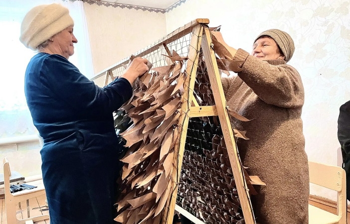 На станках, установленных в здании администрации села, почти за месяц было изготовлено изготовили около15 маскировочных сетей. Работа шла в 2 смены ежедневно, кроме выходного дня. Жители села изготавливают и окопные свечи.