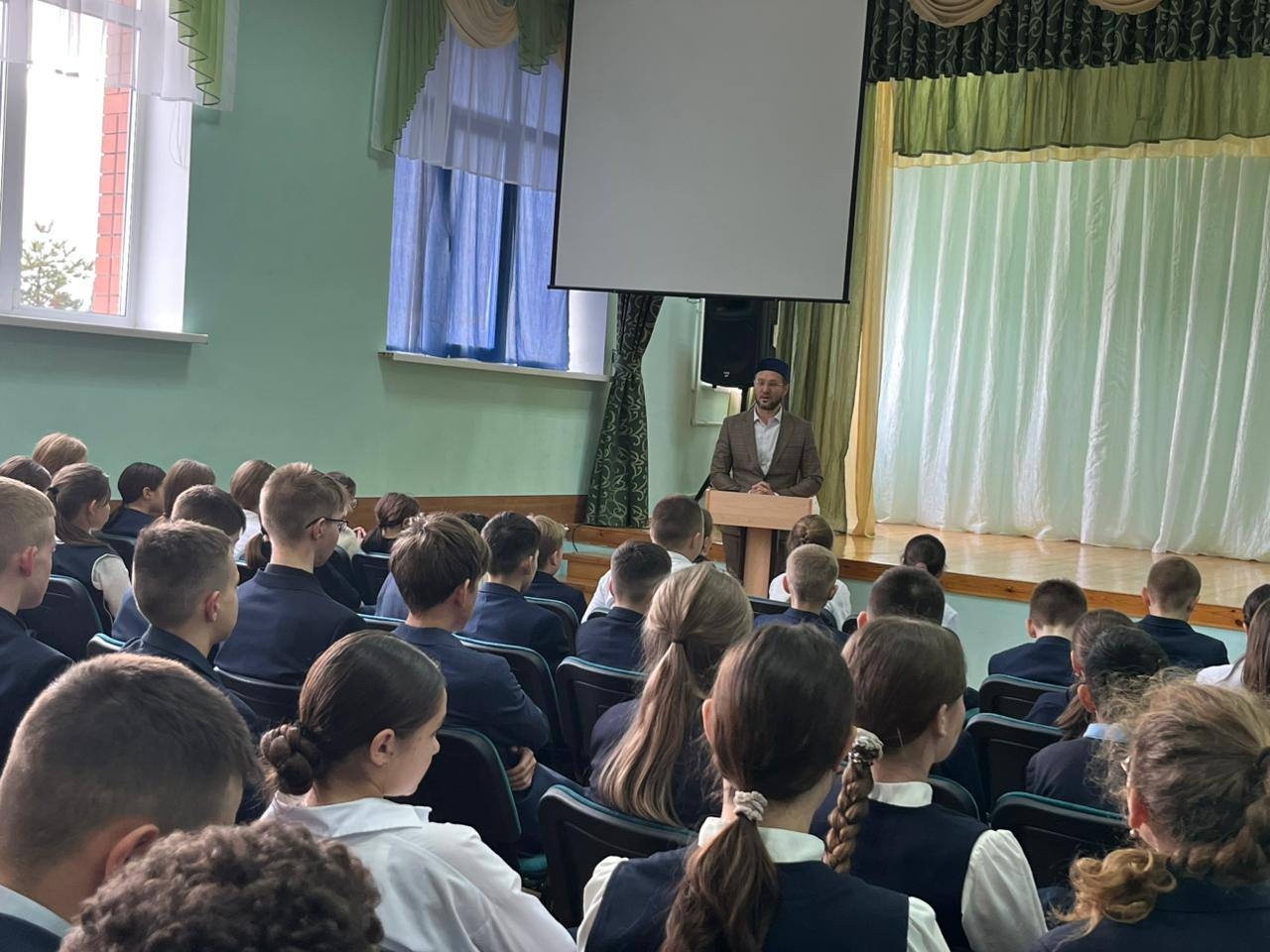 Состоялась очередная встреча в стенах школы села Татарские Сугуты. Казый Духовного управления мусульман Чувашской Республики, имам-хатыб центральной мечети села Рефик хазрат Кадиров встретился с учащимися средних и старших классов.