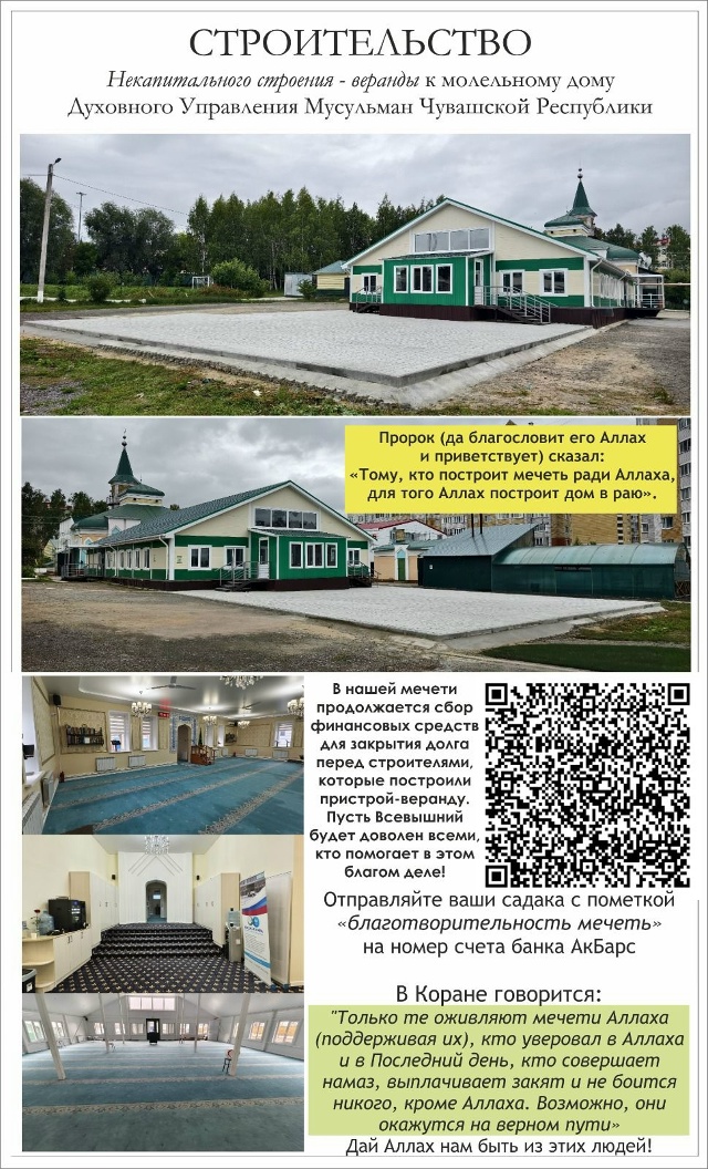 Дорогие единоверцы! В мечети «Булгар» города Чебоксары продолжаются активные работы по возведению пристроя, чтобы люди смогли молится в комфортных условиях!