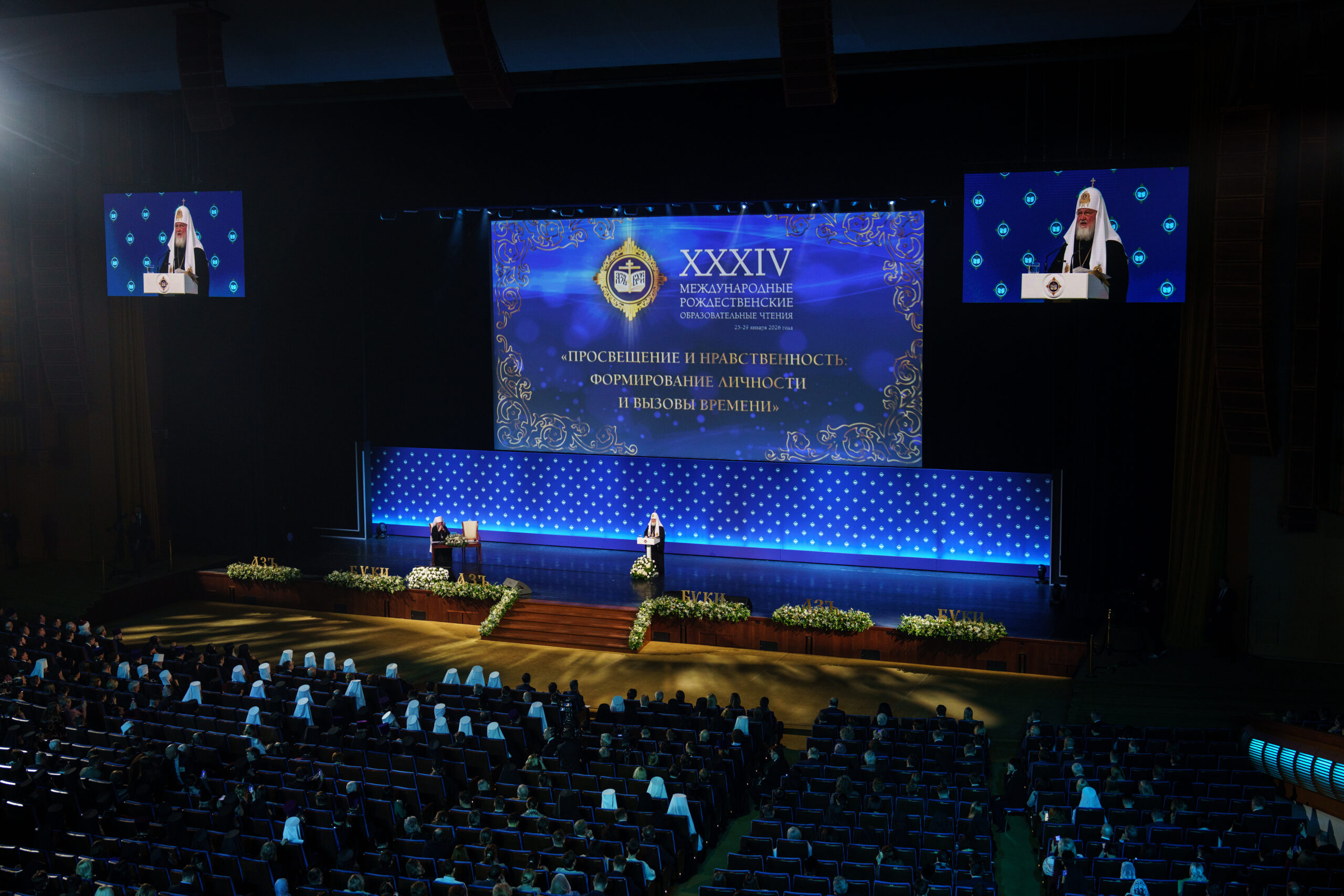 27 января в Государственном Кремлёвском дворце в Москве состоялось торжественное пленарное заседание XXXIV Международных Рождественских образовательных чтений на тему «Просвещение и нравственность: формирование личности и вызовы времени». Заседание прошло под председательством Святейшего Патриарха Московского и всея Руси Кирилла.