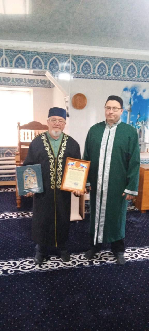 В мечети села Ишмурзино Суринск Яльчикского муниципального округа прошло награждение уважаемых активистов села- от имени Духовного управления Чувашской Республики за многолетний плодотворный труд благодарственные письма и ценные подарки были вручены Рифкату Ахметзянову и Ришату Самитову.