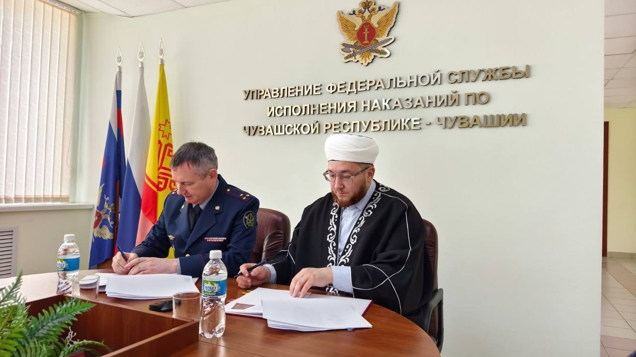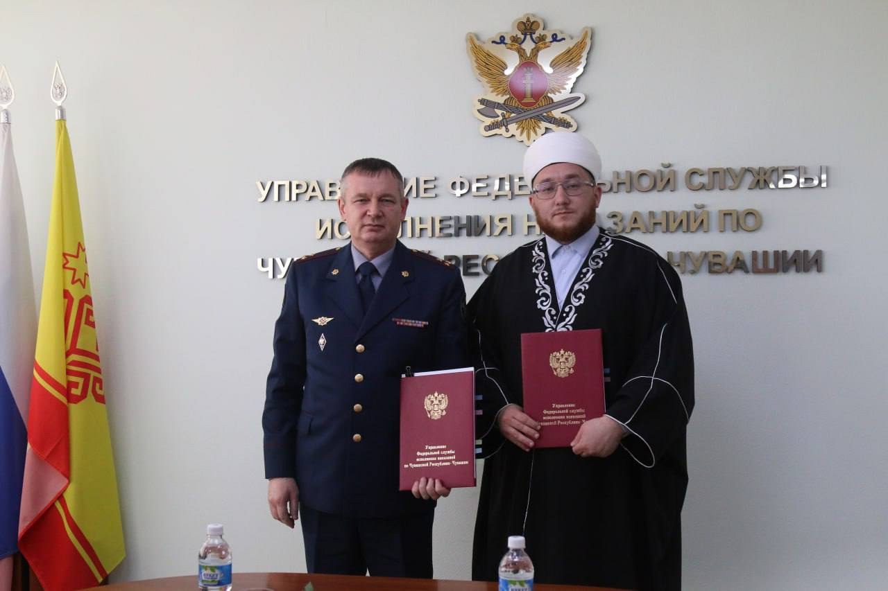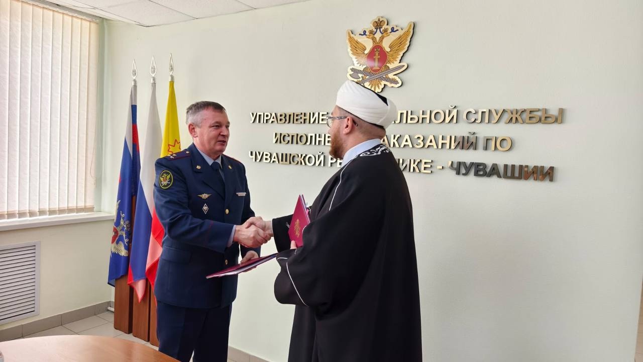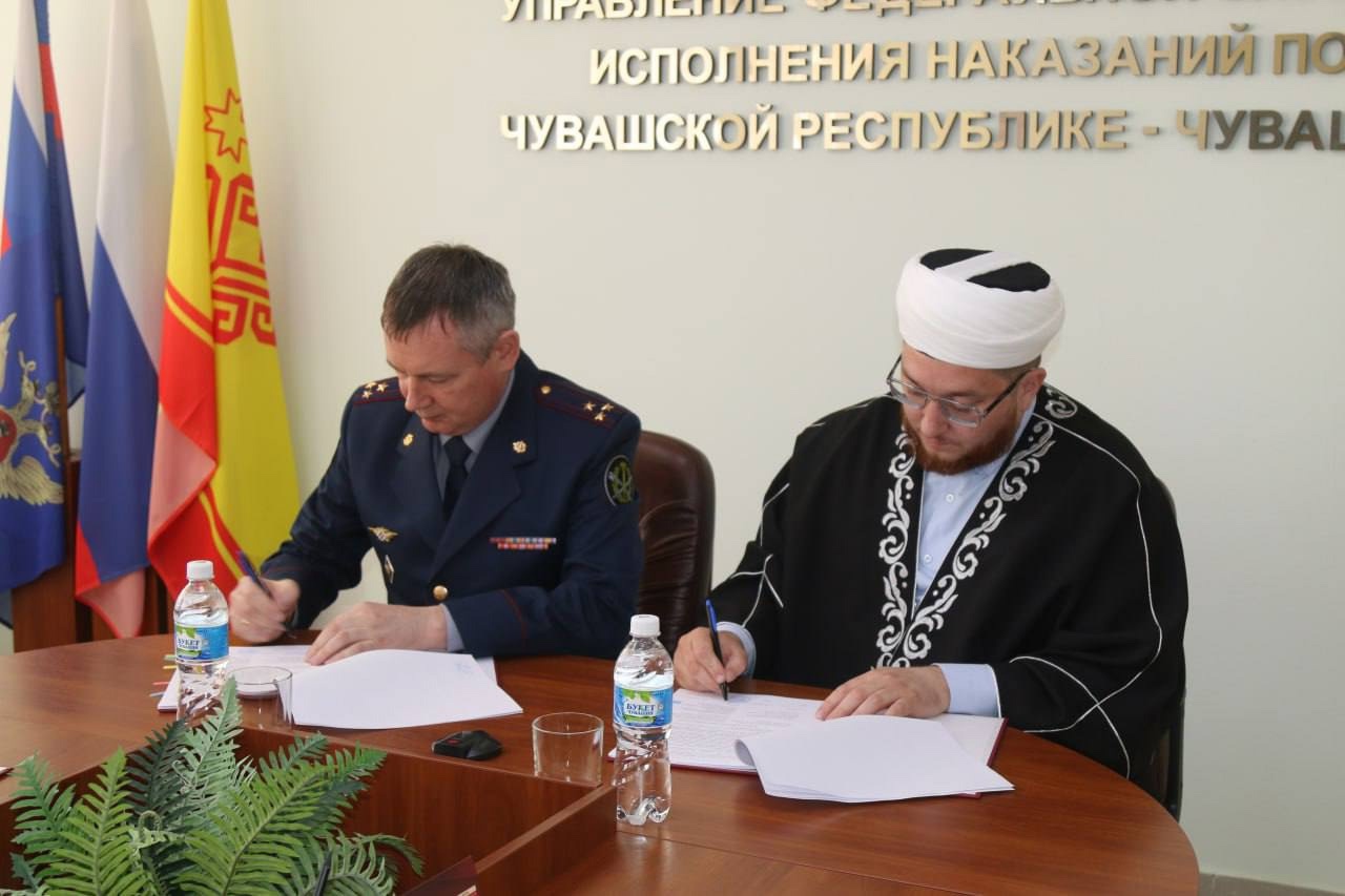 Муфтий Чувашской Республики Ильяс хазрат Сафиянов и начальник УФСИН России по Чувашии Геннадий Петрович Шиндин подписали Соглашение о взаимодействии и сотрудничестве.