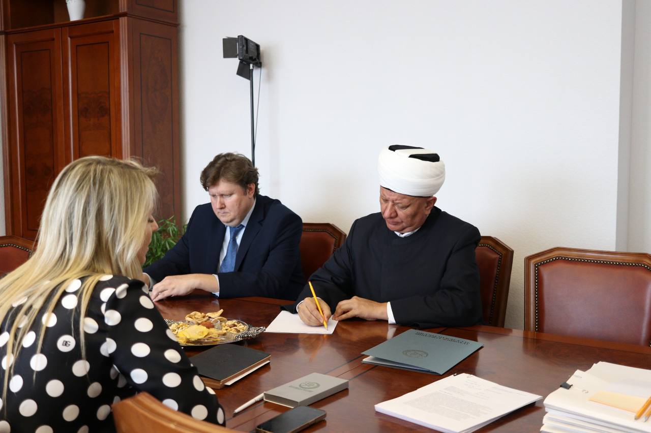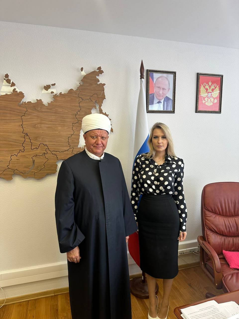 В Государственной Думе ФС РФ прошла рабочая встреча Главы Духовного собрания мусульман России, члена Общественной палаты РФ, муфтия Москвы Альбира хазрата Крганова с председателем Комитета Госдумы по развитию гражданского общества, вопросам общественных и религиозных объединений Яной Лантратовой.