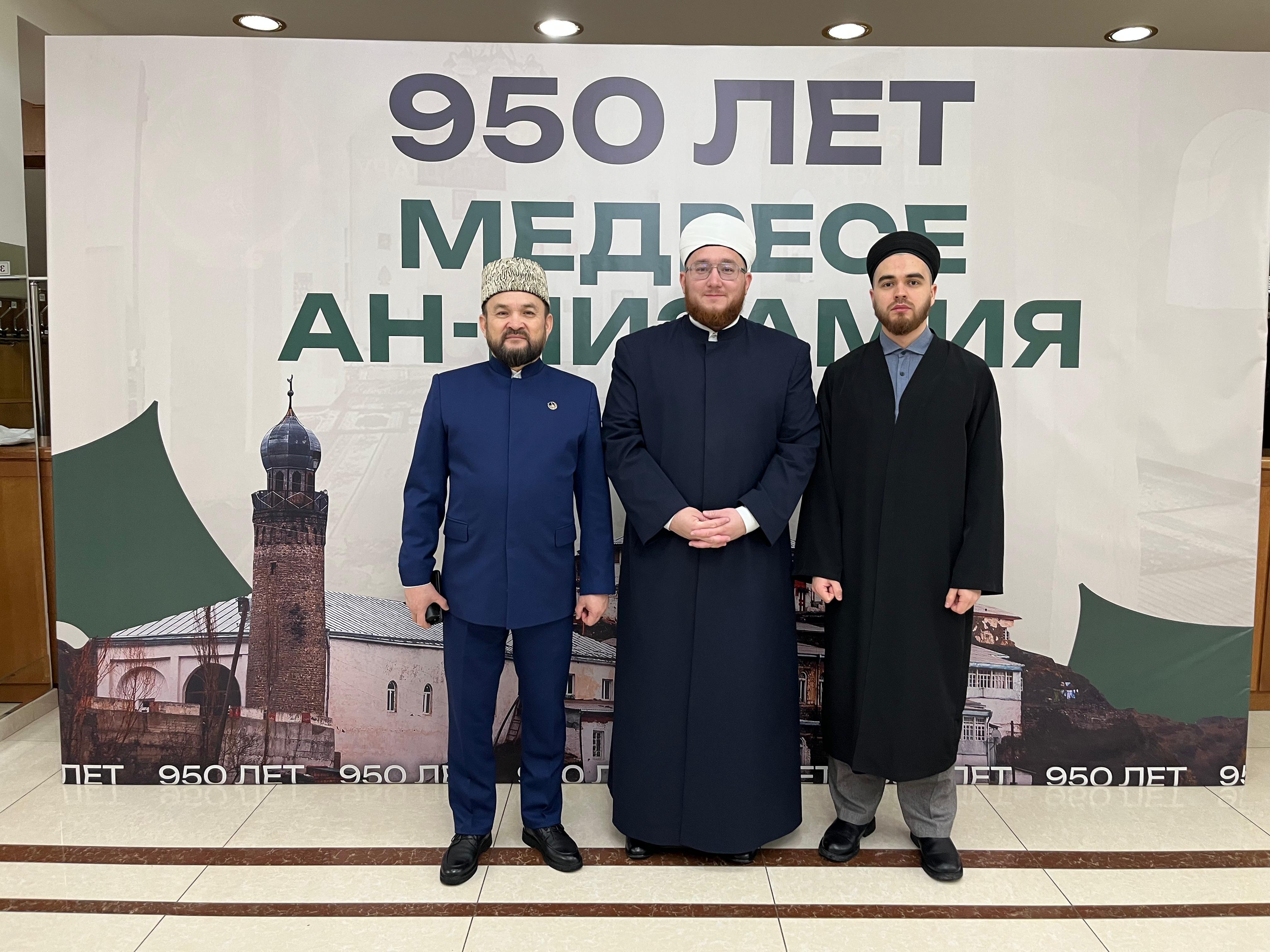 По благословению Главы Духовного собрания мусульман, муфтия Москвы Альбира хазрата Крганова муфтий Чувашии Ильяс хазрат Сафиянов, заведующий кафедрой религиозных и гуманитарных дисциплин Исламского института им. Мухамеджана Хусаинова Ильдар Бояров и имам мечети «Булгар» г. Чебоксары Хабир хазрат Ханов приняли участие в форуме, посвящённом 950-летию древнейшего университета исламской цивилизации - Медресе «ан-Низамия».