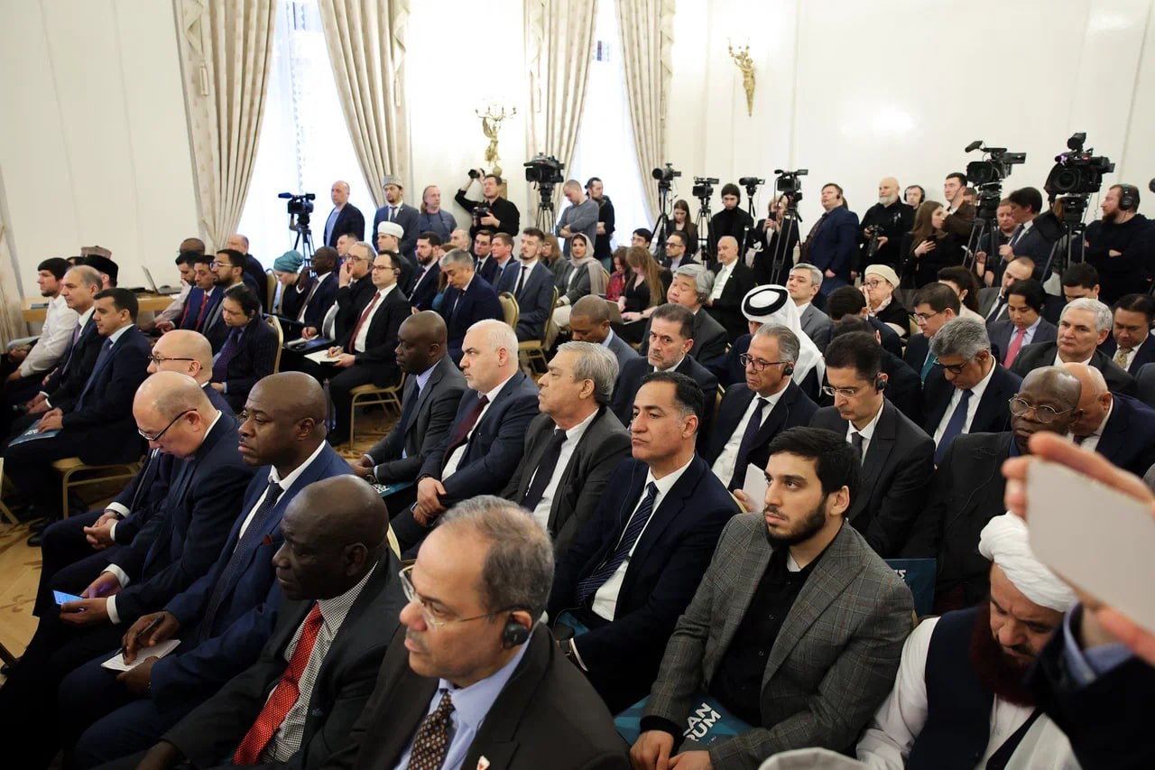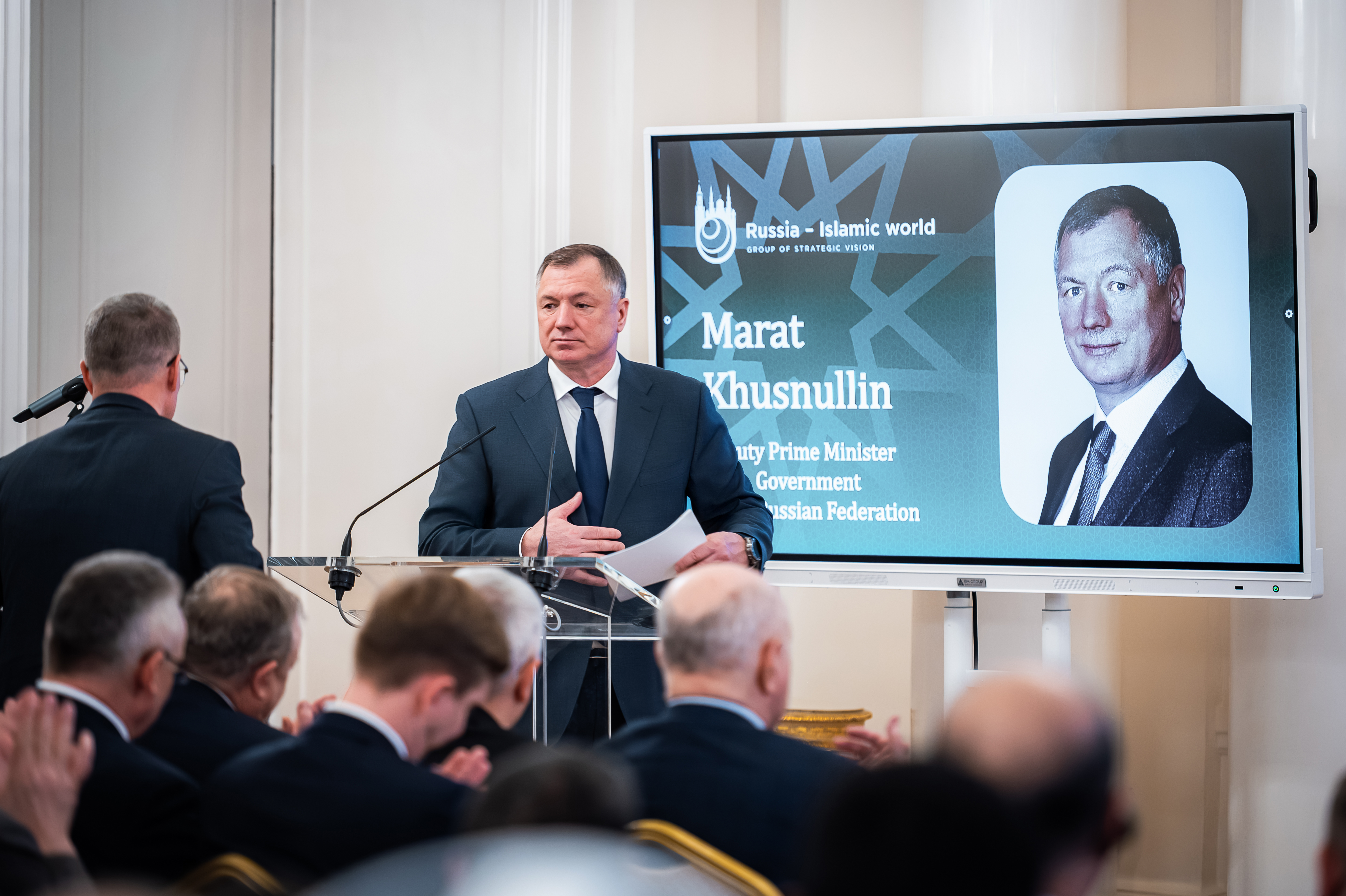 С приветственным словом к участникам встречи обратились Министр иностранных дел Российской Федерации Сергей Викторович Лавров, заместитель Председателя Правительства Российской Федерации Марат Шакирзянович Хуснуллин и Раис Республики Татарстан, председатель Группы стратегического видения «Россия - Исламский мир» Рустам Нургалиевич Минниханов.